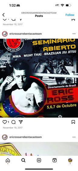 Professor Eric Ross was born in Montes Claros, Minas Gerais, Brazil in 1980. His Martial Arts journey began in 1986 at the age of 6. Under the guidance of several nationally recognized Martial Artists, Eric trained Capoeira with Master Lagartixa. His exceptional Capoeira skills were acknowledged in the publication "Capoeira Arts Cafe." In 1992, he furthered his training with Master Marcos David in Castelo Branco Jiu Jitsu and Master Reinaldo Ribeiro, an ADCC Champion. Additional training included sessions with Paulo Rezende. Transitioning to Gracie Barra, he honed his skills with Master Liberil before joining Tata Fight Team, where he trained with Master Tata Duarte and Philipe Lima. Eric later trained with Master Romolo Barros in Hawaii, with Rickson Gracie Jiu Jitsu. Subsequently, he moved to Costa Rica, where he had the opportunity to join Caveirinha Jiu Jitsu. He strives to serve his students and looks forward to changing lives, giving back to the community and surviviors or violence.